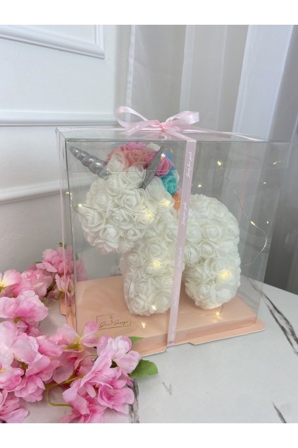 Krémová svítící růže v rozměru 130cm. Originální dárek pro ženy.